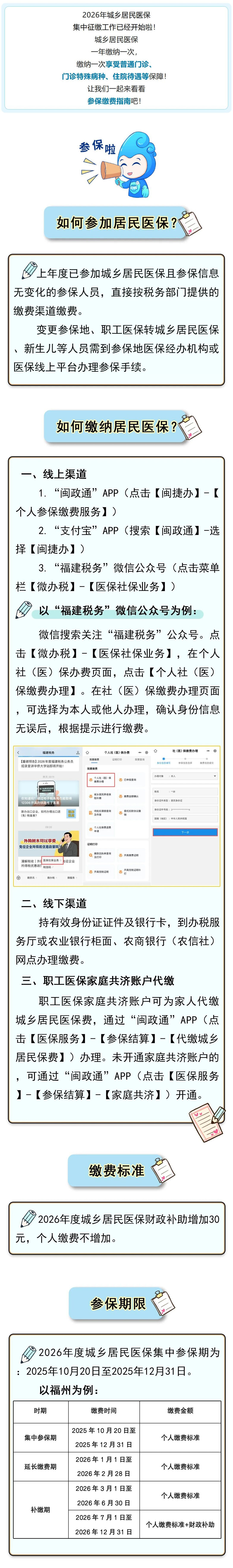 全民参保缴费集中宣传月|@参保人 2026年度福建省城乡居民医保集中征缴工作开始啦!