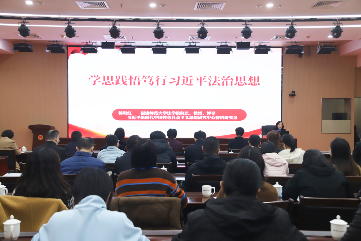 局党组理论学习中心组召开集体学习(扩大)会议,局机关和直属单位全体人员参加。会议邀请福建师范大学法学院院长、教授杨垠红围绕“学思践悟笃行习近平法治思想”主题作专题辅导,系统讲解习近平法治思想的重大意义、丰富内涵、核心要义、精神实质、实践要求,帮助医保干部更加自觉运用习近平法治思想指导解决实际问题,切实将法治思维贯穿于医保行政决策和执法全过程。
