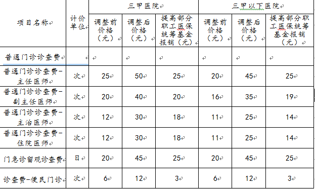 二、调整后的普通门诊诊查费、门急诊留观诊查费、便民门诊等项目价格情况详见下表: