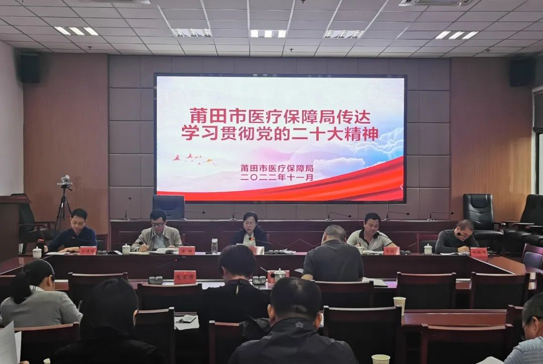 11月3日,莆田市医保局召开党组(扩大)会议,深入学习贯彻党的二十大精神,传达学习省委常委会(扩大)会议有关精神,研究贯彻落实措施。莆田市医保局党组书记、局长郭荔花主持会议并讲话。