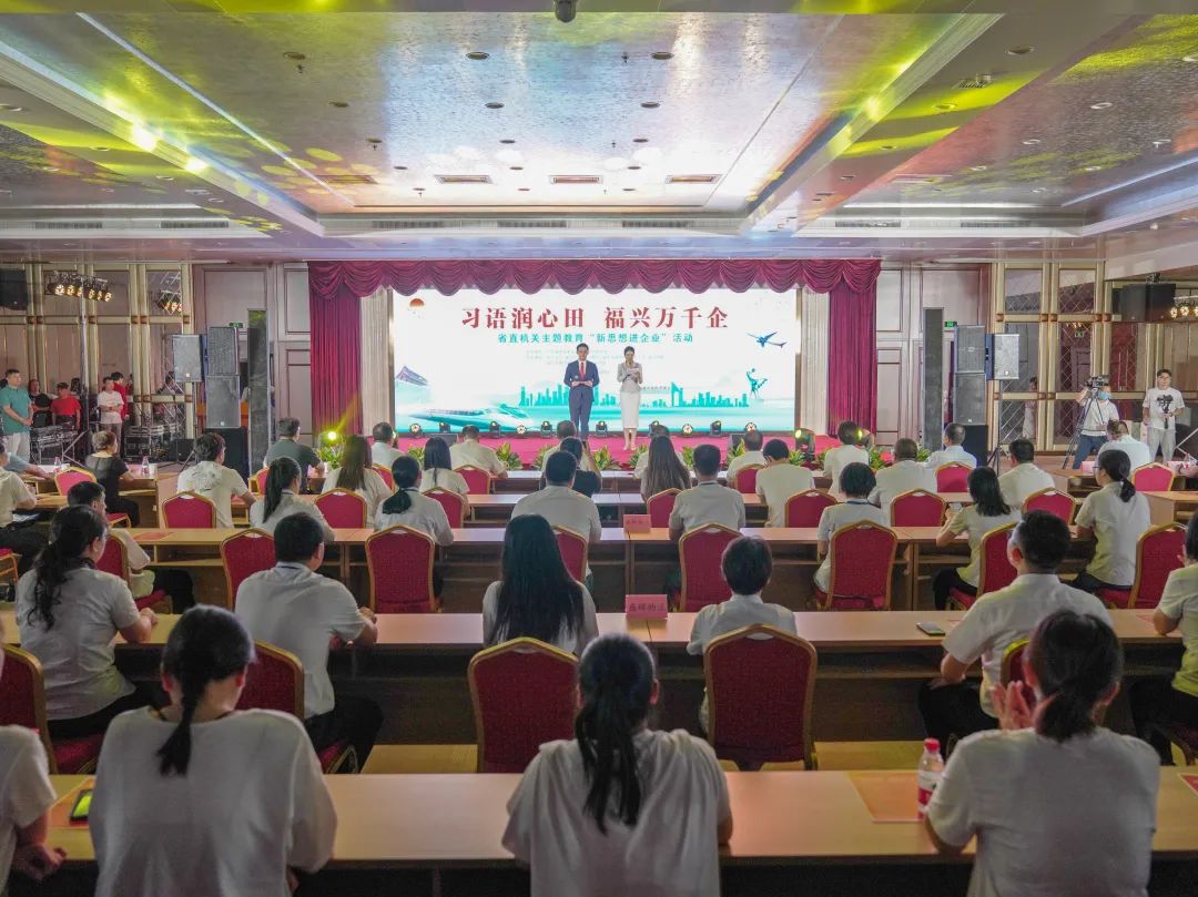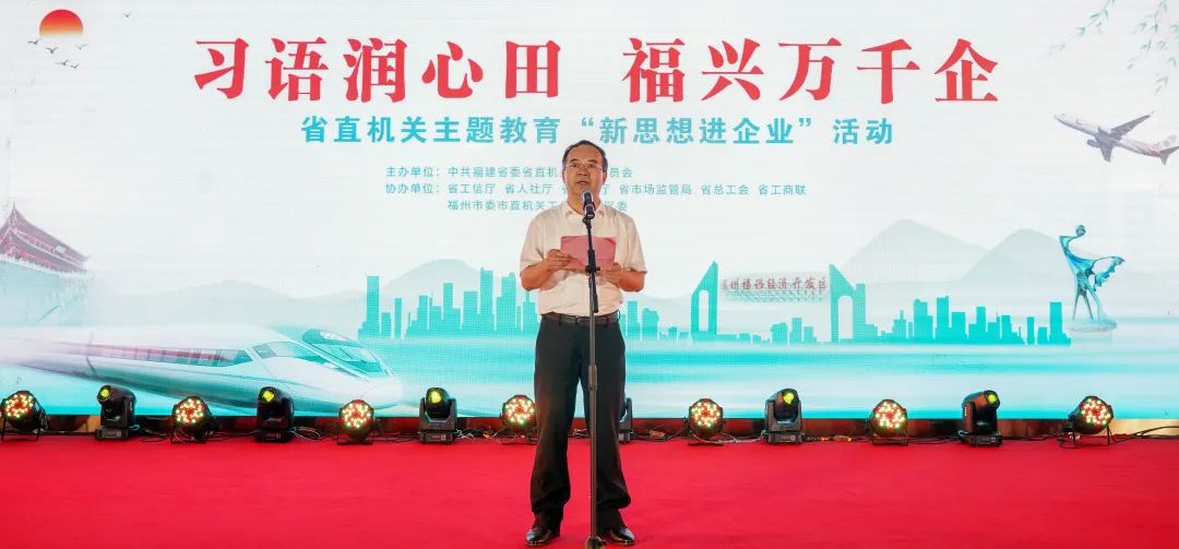 6月9日临近傍晚,在福州市福兴经济开发区企业工余时间,一场由省委主题教育第4巡回指导组指导,省委省直机关工委主办,省工信厅、人社厅、文旅厅、市场监管局、总工会、工商联,福州市委市直机关工委、晋安区委共同协办的“习语润心田福兴万千企”——省直机关主题教育“新思想进企业”活动在开发区盛辉物流园区举行。