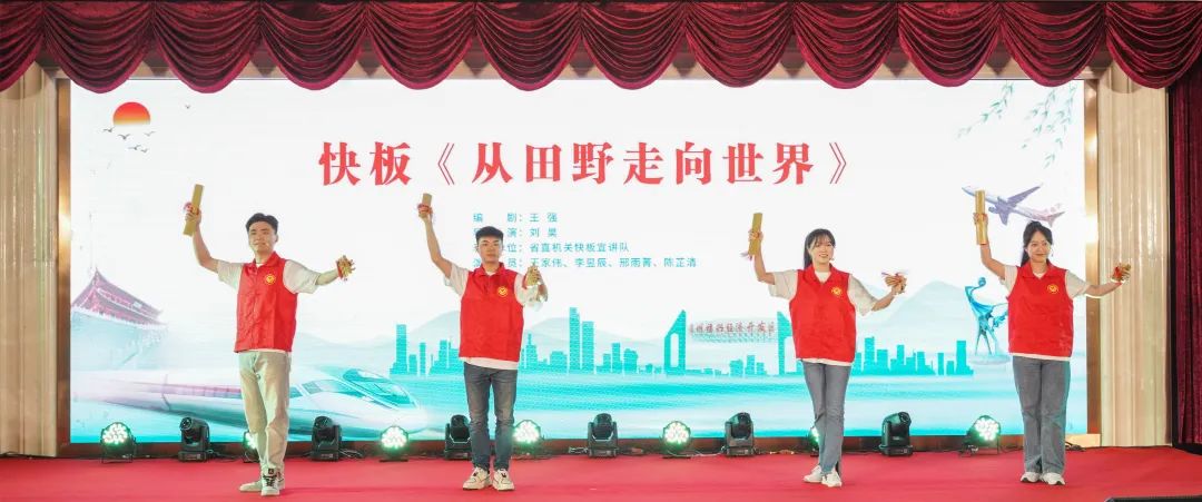 “手握竹板喜开颜,福兴开发区成立……”省直机关快板宣讲队带来了群口快板《从田野走向世界》,随着抑扬顿挫的快板节奏,从1992年元旦《福州晚报》发表的习近平同志写在福兴投资区成立一周年的署名文章讲起,声情并茂讲述了30多年来福兴开发区的发展巨变,表达了牢记习近平总书记对全力支持开发区建设,全力支持民营企业、外资企业和中小微企业等各类企业发展的重要嘱托,坚持“两个毫不动摇”,大力传承当年开发区“勤、廉、实、严、优”的创业作风,发扬斗争精神、专业精神、实干精神、团结精神,齐心协力开新局的信心信念。