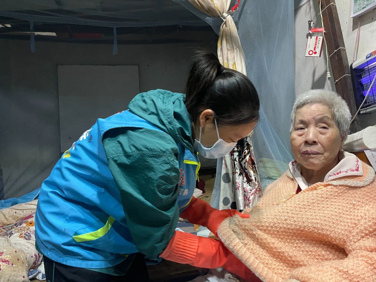 图1 护理员朱月娇正为林莺雪阿姨做擦浴护理