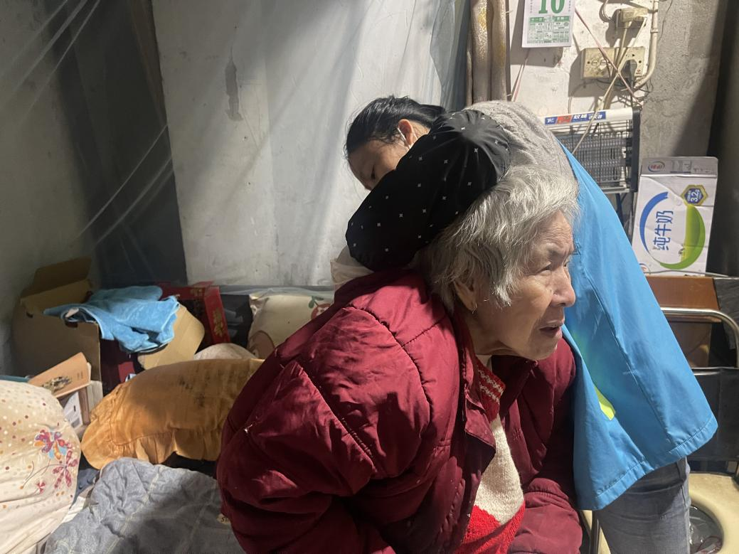 图2 护理员朱月娇正为林莺雪阿姨叩背