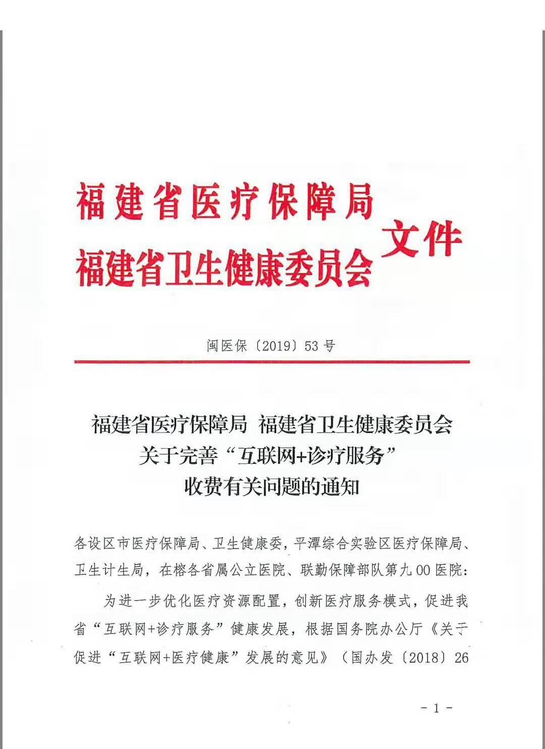 - 发文字号:闽医保〔2019〕53号