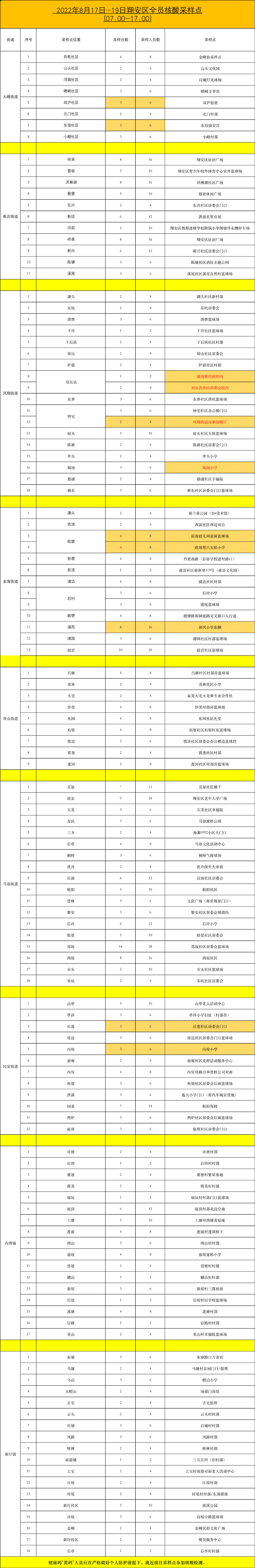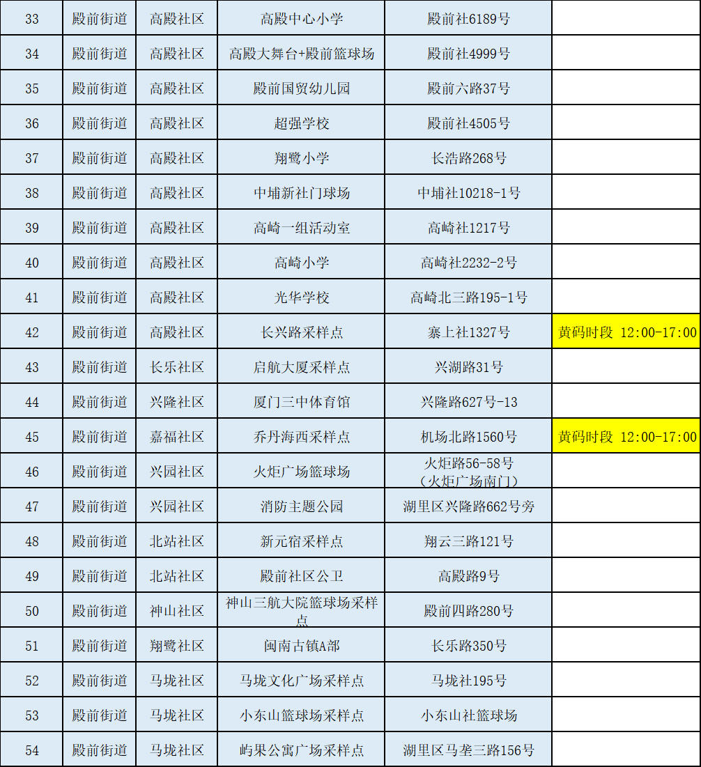 翔安区核酸采样点如下,内厝赵岗改“赵岗村流动人口服务管理站”。