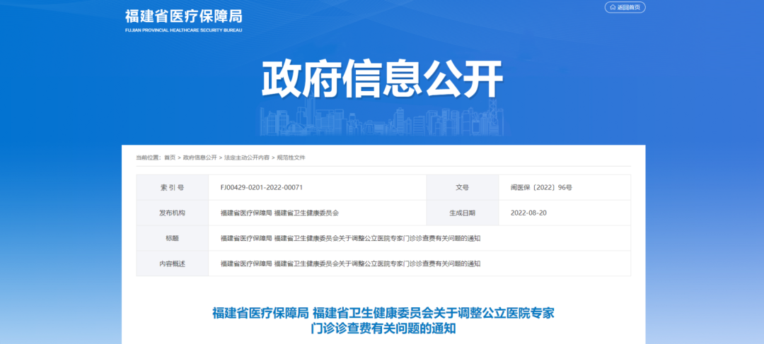 近日,福建省医疗保障局福建省卫生健康委员会印发了《关于调整公立医院专家门诊诊查费有关问题的通知》(以下简称《通知》),现将主要内容解读如下: