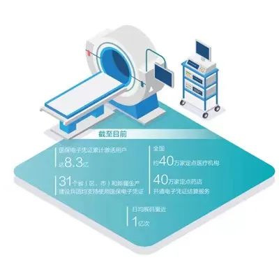 2019年11月24日,国家医保局启用全国医保电子凭证系统,签发全国首张医保电子凭证。启动之初仅覆盖河北、吉林、黑龙江、上海、福建、山东、广东7省(市)的部分城市,如今已实现全覆盖——截至目前,医保电子凭证全渠道授权用户已达12.3亿,31个省(区、市)和新疆生产建设兵团均已支持使用医保电子凭证,全国约40万家定点医疗机构、40万家定点药店开通电子凭证结算服务。