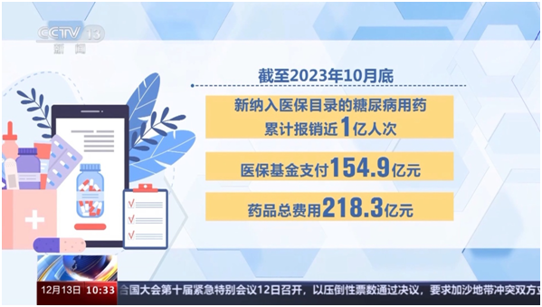 在过去的5年,通过国家谈判进入医保目录的糖尿病治疗药物,在百姓日常购药时已经可以报销。截至2023年10月底,这些新纳入医保目录的糖尿病用药累计报销近1亿人次,医保基金支付154.9亿元,药品总费用218.3亿元。通过谈判降价和医保报销,累计为患者减负479.5亿元,平均每人次减负511.7元。